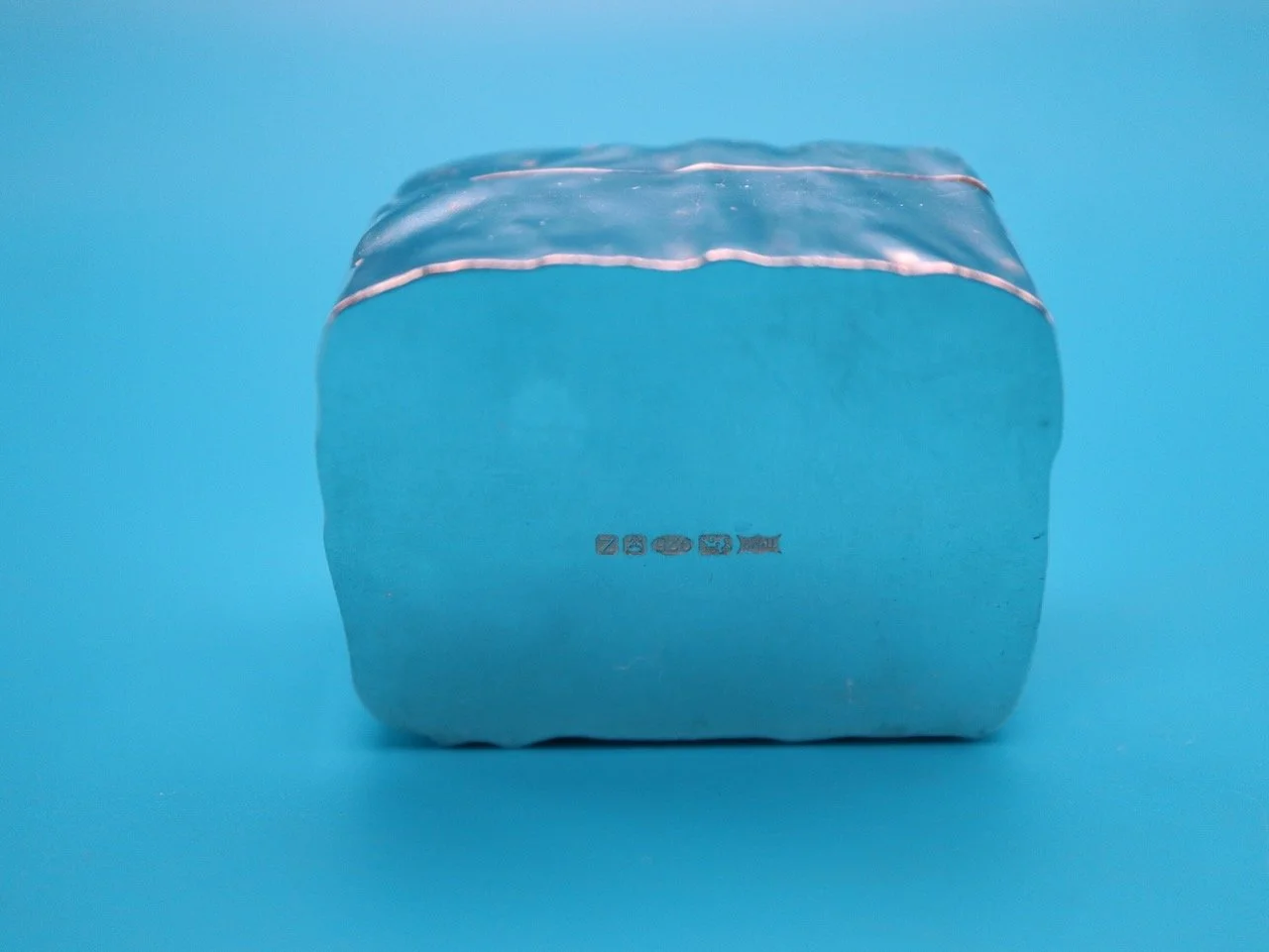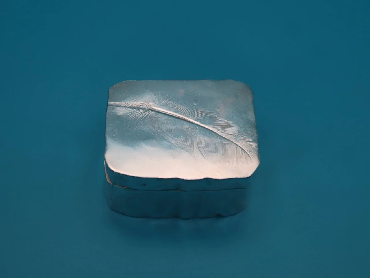Discover the charm of our handcrafted silver trinket box, expertly made from Argentium silver and fully hallmarked as sterling silver. This exquisite piece features a unique texture of coffee beans impressed onto both the top and base, achieved through an innovative process of rolling the metal with a piece of nylon lace curtain – a happy accident that adds a distinctive character to the design.